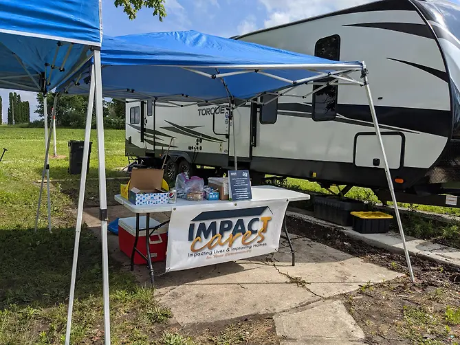 Maybe the best story is of a resident who has a beautiful yard, decorated with ‘angels’. At night his place is lit up and is something to see. His roof leaked and the Impact Cares team repaired his roof and made sure it was sealed up. What was his response? “The owners must be amazing people because I’ve never heard of anything like this before!”